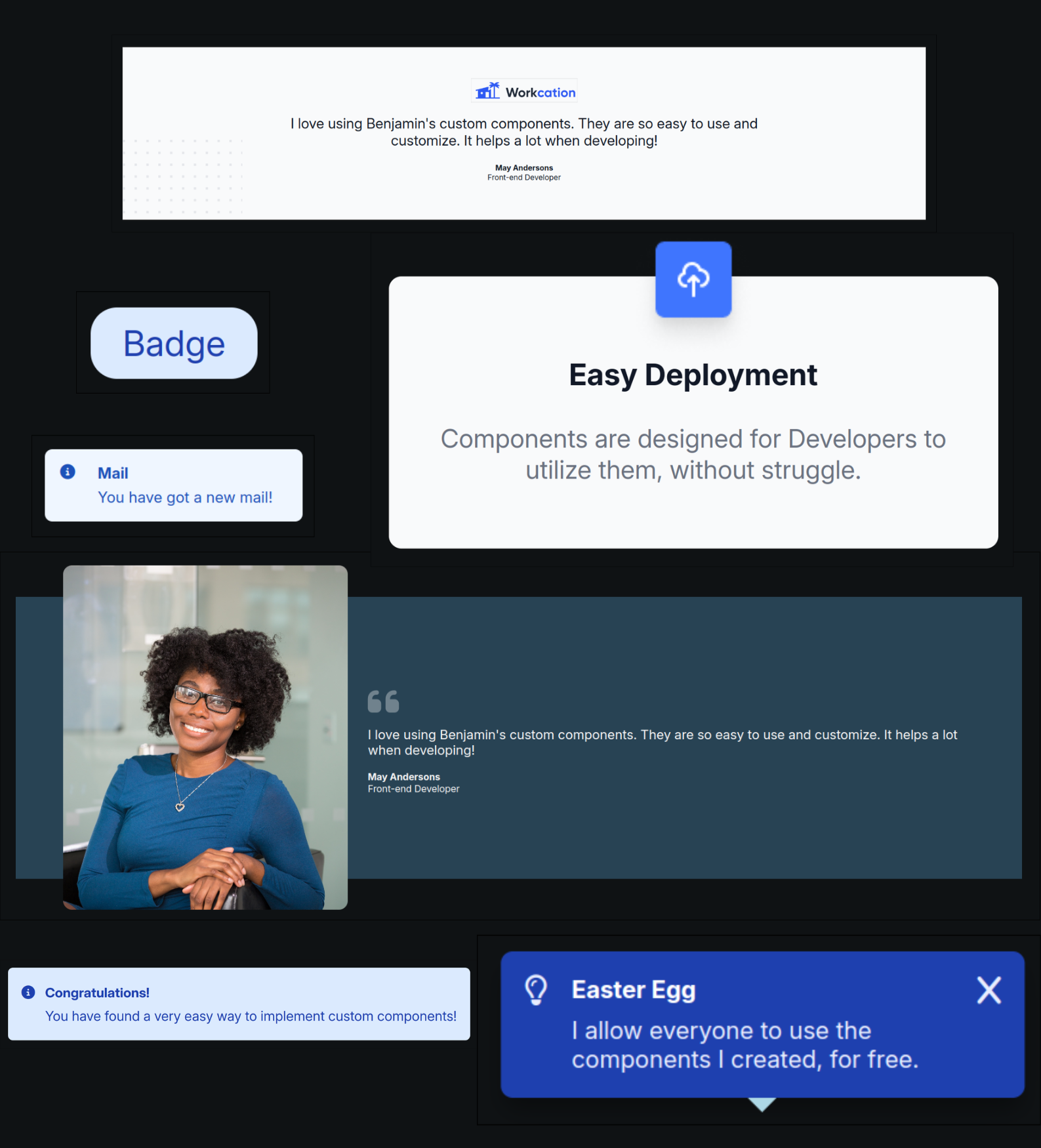 I, Benjamin Cuci, built react components that you can easily add to your React projects as components.